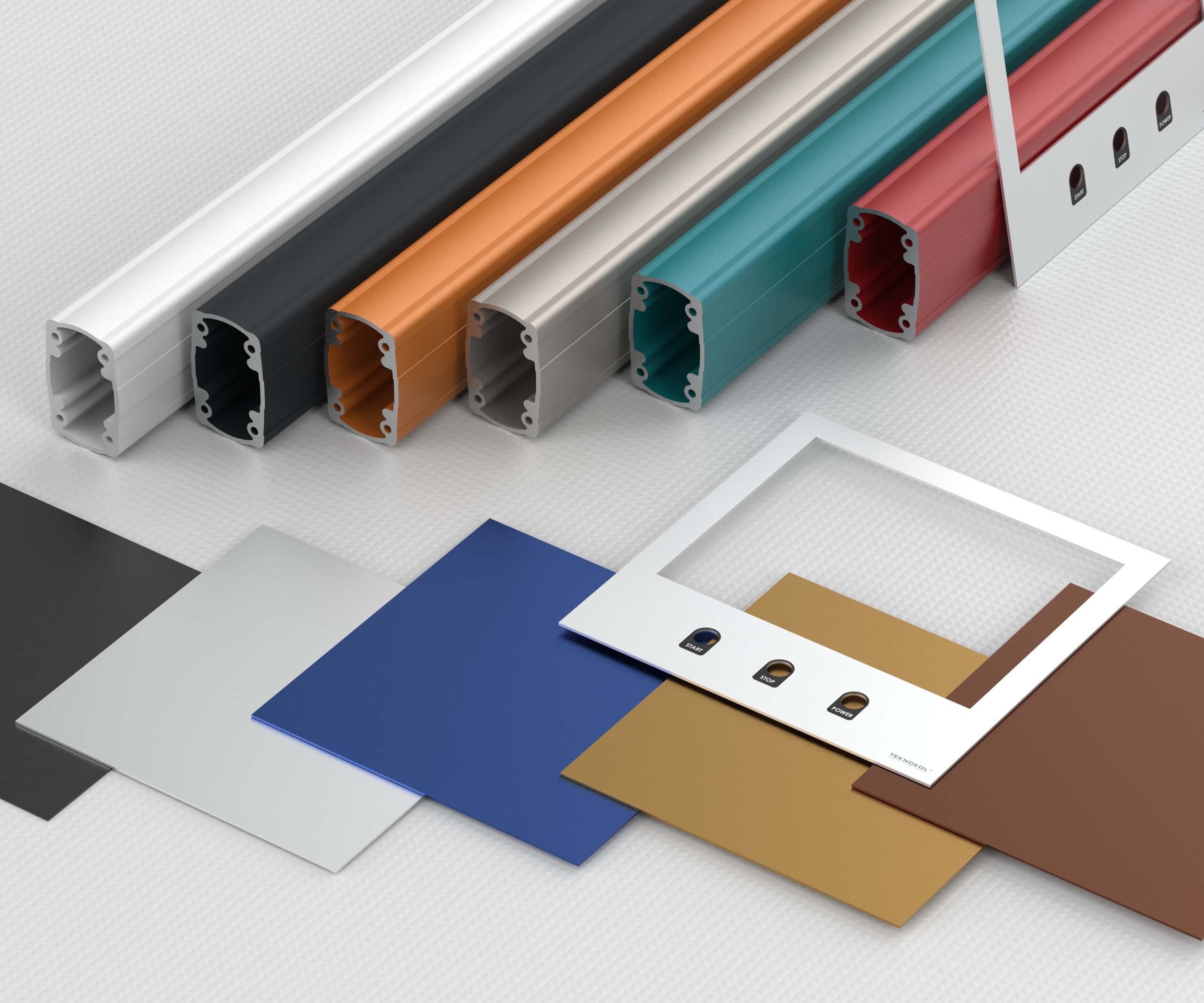 Aluminium sheets gain both durability and aesthetic appearance with anodised coating. Logos, writings and technical markings can be applied in a long-lasting way by screen printing method. Plate surfaces can be decorated with desired visuals with PVC coating, thus unique and remarkable designs are obtained. Operator panels can be painted with electrostatic powder paint in different colours according to customer demands. All these processes are carried out in accordance with industrial quality standards. Both visuality and functionality are prioritised in the products made ready for installation. Every stage of production is meticulously planned and implemented by our professional teams.